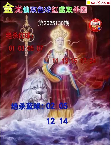 > 双色球2025年图迷130期 金光仙红蓝双杀图